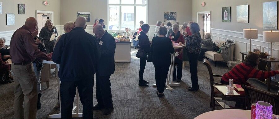 Good company and much needed comfort was given to all who turned out for a very successful Valentine's luncheon on February 12 for widows and widowers in our community. Our guests were met with welcome from Howard IV, Melissa, and Amy. Everyone enjoyed a delicious lunch from Acappella, our catering partner and locally-owned family restaurant. Garrett Tollenger, guest speaker from GriefShare and Compassionate Friends, gave excellent suggestions for navigating grief and life after losing a spouse and offered hope and helpful resources to all in attendance. Everyone made new connections and were offered Jarrettsville Creamery cookies and a hope of spring flowerpot takeaway with Forget-Me-Not seeds to plant. We are hopeful to continue to grow these relationships and are grateful for all who came out.